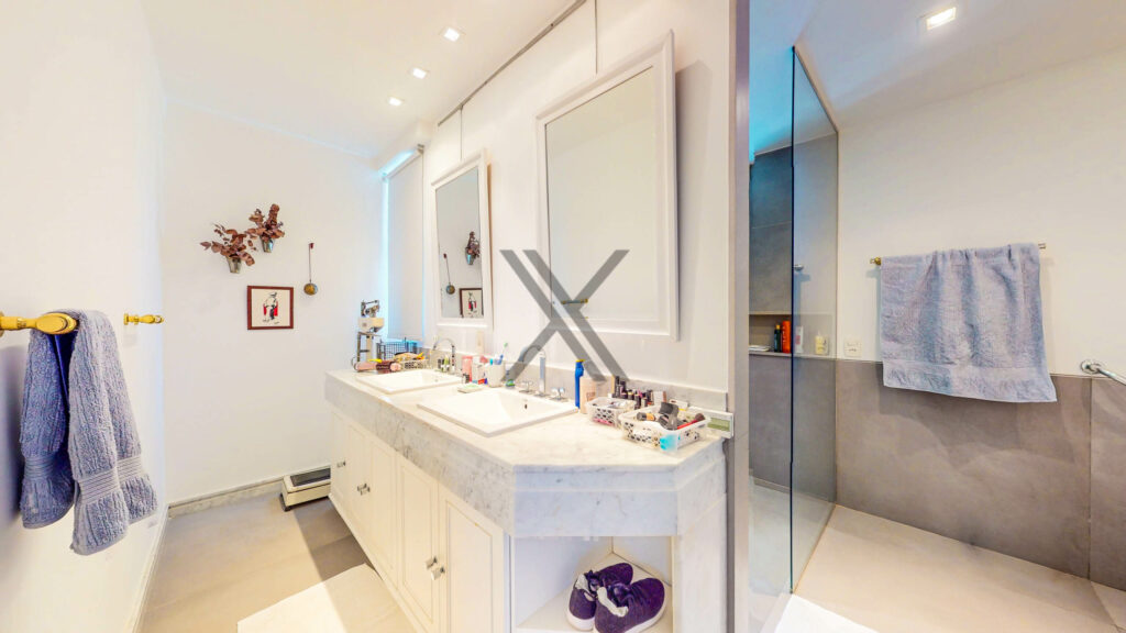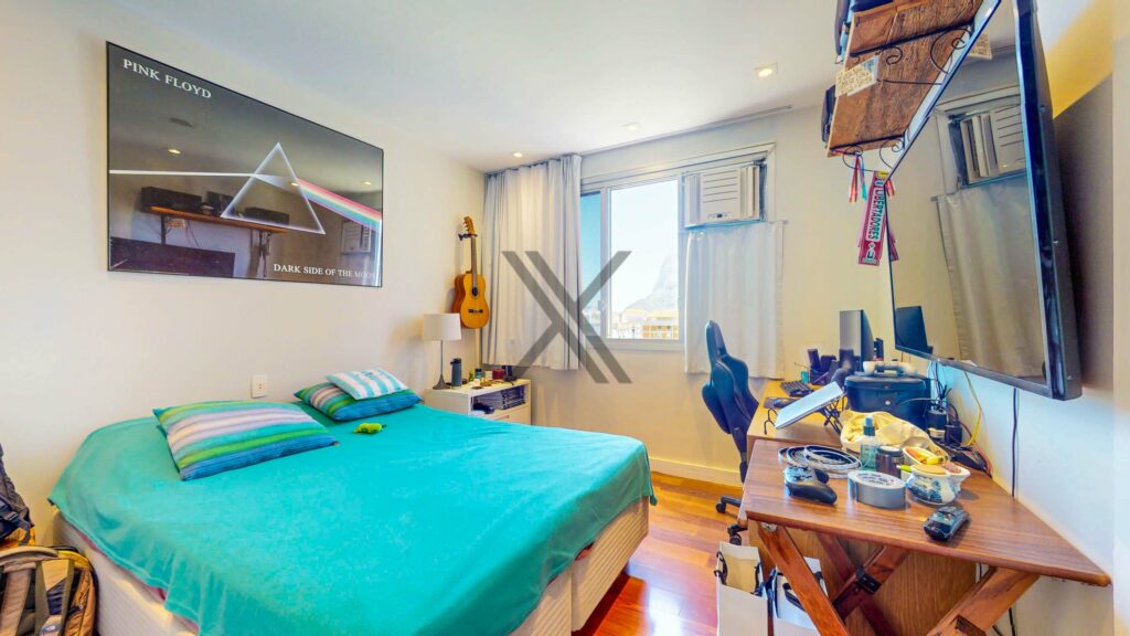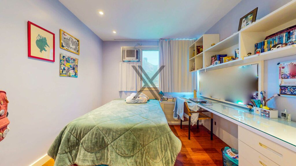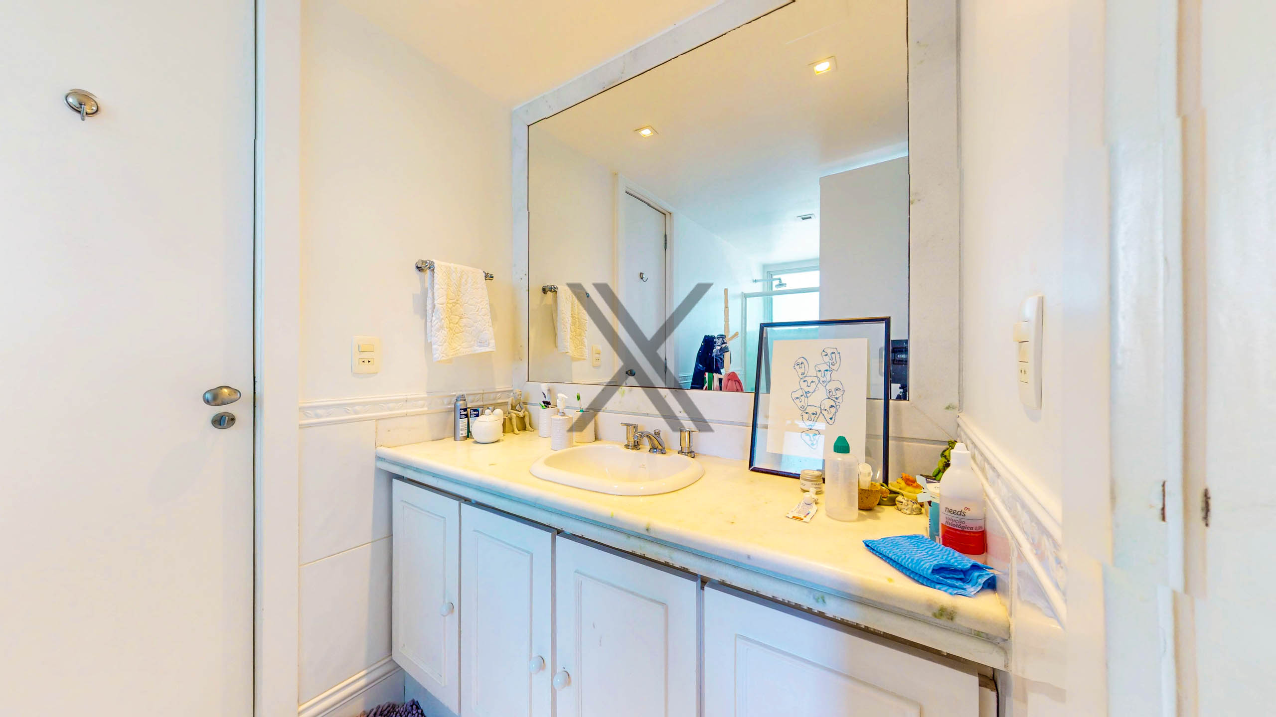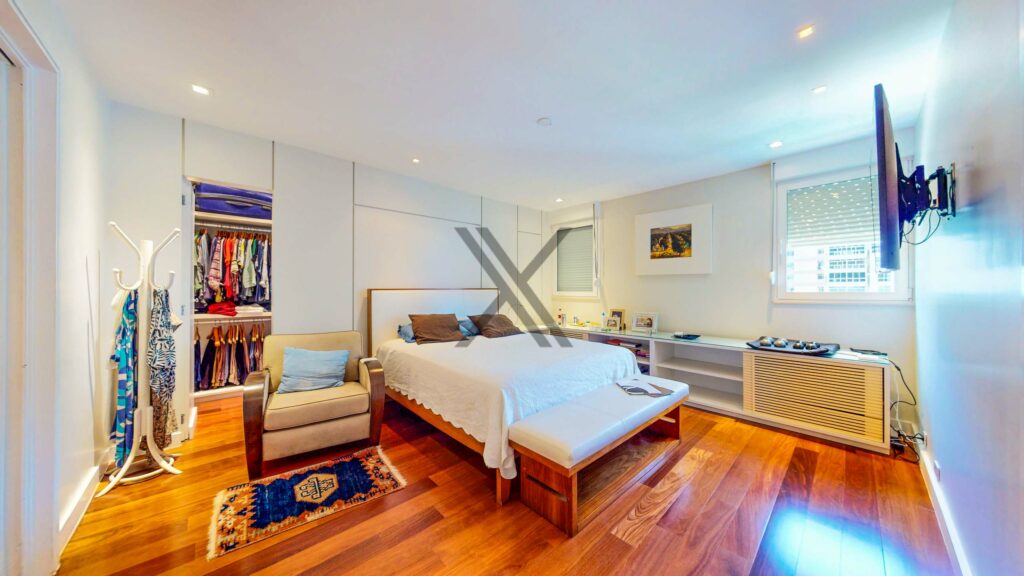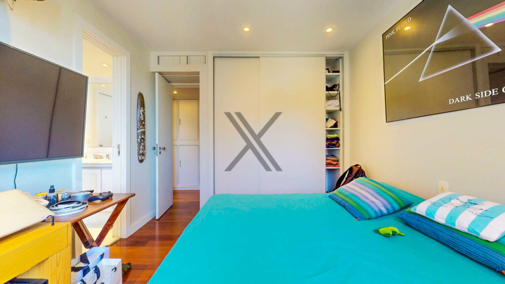 Na parte privativa, atualmente, temos 3 quartos, sendo 2 suítes, todos com boa metragem, grande quantidade de armários e uma excelente ventilação natural com amplas janelas. A suíte master é um show à parte, pois além de um excelente espaço de circulação, possui um escritório anexo, o que originalmente era um dos quartos, e um ótimo walk-in closet, onde era a varanda. Por fim, um banheiro social complementa o ambiente.