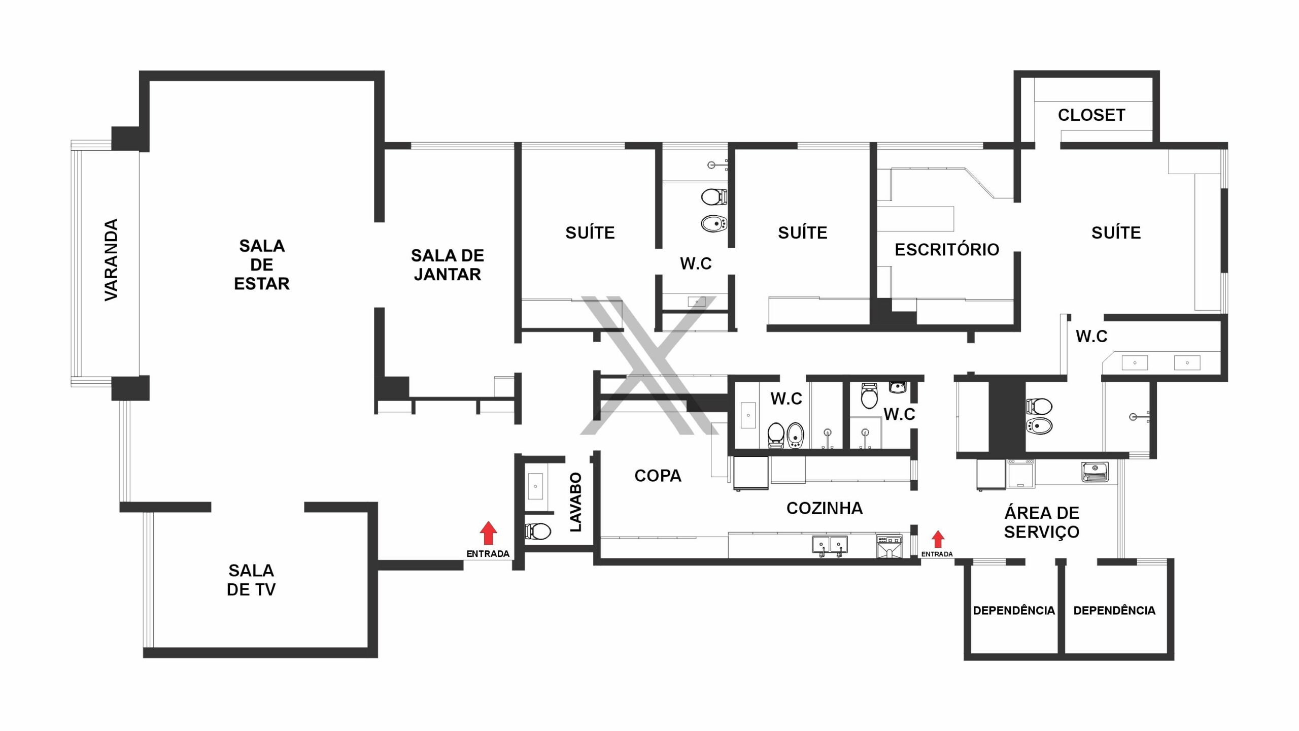 A planta original possui 4 quartos, porém um deles foi utilizado para ampliação da suíte, podendo ser facilmente revertido.