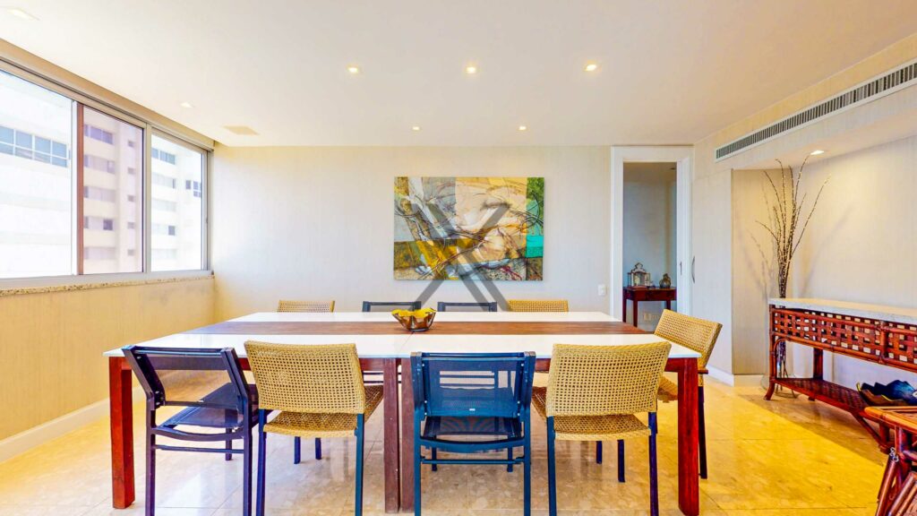 Apartamento de 260 m², reformado e silencioso, na melhor coluna do prédio no Village São Conrado. O imóvel tem uma vista cinematográfica para o mar e Pedra da Gávea, estando localizado a menos de 2 minutos da praia e do Shopping Fashion Mall.